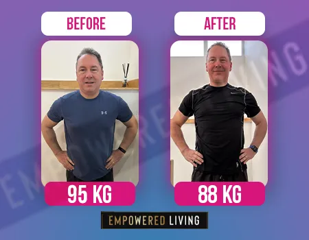 "After completing the 30-day fat loss program, I am feeling better. I can sleep better, and I don't have stomach acidity anymore, which I've had for several years. Dropped 5.5 kg of body fat in just 28 days." - Richard
